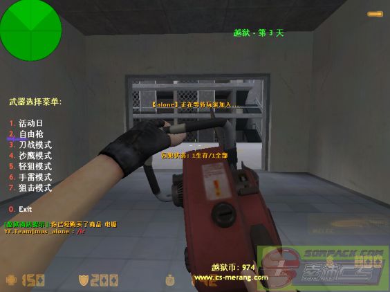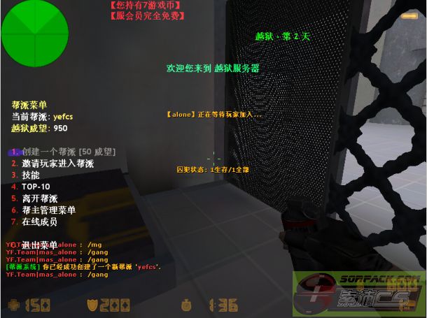| -- 作者:shantoushi -- 发布时间:2011-12-14 16:38:00 -- [原创]叶风越狱客户端2.0 正式版(可一键开服)【申精】 搜索的到服务器的(国外) 帮派插件汉化版,又叶风会员章鱼汉化 请注意看左上角红色的部分,又听风创办人:海海 无偿提供,原本显示在右下角的越狱币现在显示到了左上角。 超级囚犯拥有600的重力(可以改) 哈~我被选为超级囚犯了~ 每局一开局自动抽取一名玩家作超级囚犯,被选中的玩家将会独立运行模型参数,而且送o3o4o5,50HP和200AP 修改过的gamemenu.res,这个请放心,叶风主宰纯净,在cs主界面有一个一键修复,运行那个bat文件可以直接恢复所有的内容,也就相当于手机的格式化,运行英文原版,gamemenu自动恢复到原版,背景音乐不变 由于我一楼只能上传5个附件,那么就先到这里。2楼补图