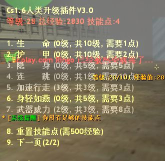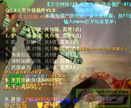 | -- 作者:look741hyz -- 发布时间:2013-12-31 21:52:00 -- 【原创】Cs1.6丧尸感染之新年版(超级好玩) 这也许是我最后一个作品了,我可能会放弃CS插件。 希望大家喜欢。 1L介绍,2L图片,3Ldemo(视频)4L下载文件(僵尸插件)+说明:请大家先看一下说明,我没有把说明放在压缩包里。 其实这也是半原创,道具30%是网上找的。 piugins文件名如下 ;升级插件 ;其他插件 银行插件(银行): 分级插件(权限): 僵尸插件(类型): 机器人辅助(辅助): 其他类插件: ; AMX Mod X 插件 ; 管理员 基本类 - 两个中只能使用一种 ; 基本类 ; 菜单类 ; 聊天 / 信息 类 ; 地图相关类 ; 配置类 ; 反恐精英 ; 允许使用 AMX Mod 插件 ; 自定义类 - 添加第三方插件到这里 下面就是给大家介绍图片了!!! |