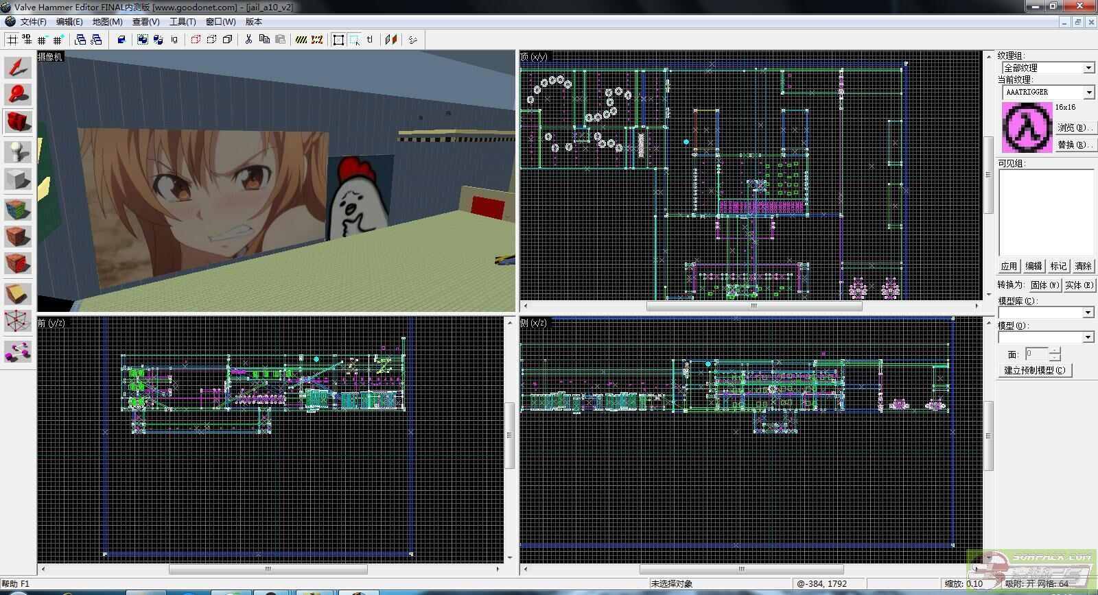 鄙人准备做几张越狱地图,CSWALLY制作的纹理放到VHE里面照样能显示,但是放到CS中玩就会蹦出一个读取错误的窗口。 图片的格式都是16为倍数的,不存在任何问题 可惜了?
