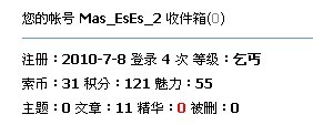 Mas_EsEs_2 等级:燒餅 索币:40 文章:16 积分:151 战队:逃兵 注册:2010年7月8日