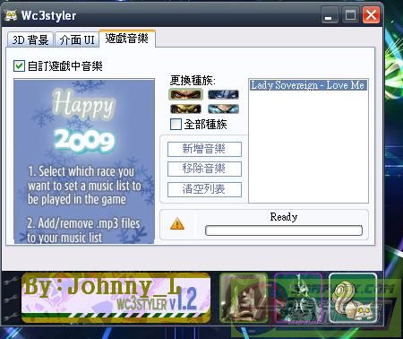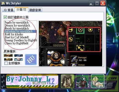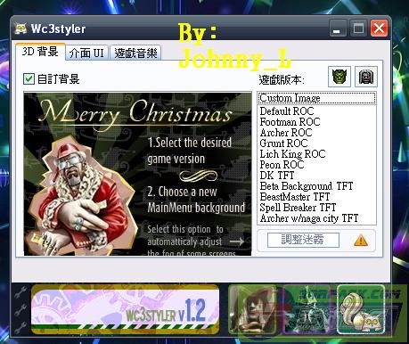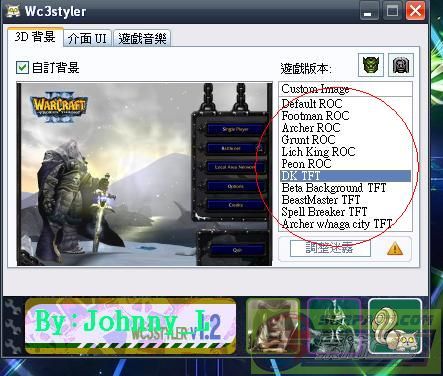 | -- 作者:Johnny_L -- 发布时间:2012-01-26 19:30:00 -- Johnny_L魔獸板面修改[內含教學] 下載好了之後 解檔案 直接開這個松鼠 此主题相关图片如下:![]() 開了之後就見到這個板面 如果想改成自己的圖片就按Custom Image 注意!!!圖片一定要是1024x768的圖片 如不是就不能修改~ 其他的選擇就好了 之後按一按你所玩的wariii的板本 板面就完成了~~ 而到了修改介面 都是直接選擇 還有一樣修改的就是mp3音樂 只要按一按新增音樂 加上你喜歡的音樂 此主题相关图片如下:![]() 然後縮小 開wariii 就會看到效果 再進game內看看 會看到指標和介面修改了 那就介紹完畢了:D 好東西當然要分享!!