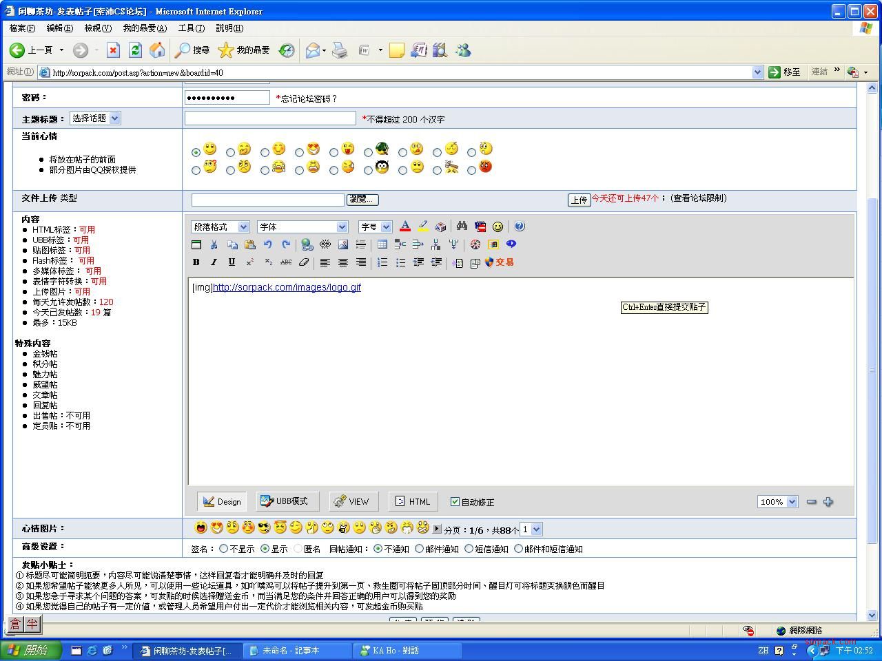 之後。在網址後加上[/img]記得要加/ 不然無效!