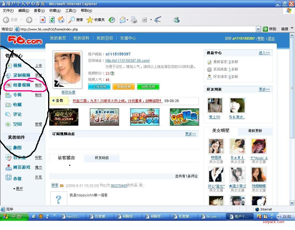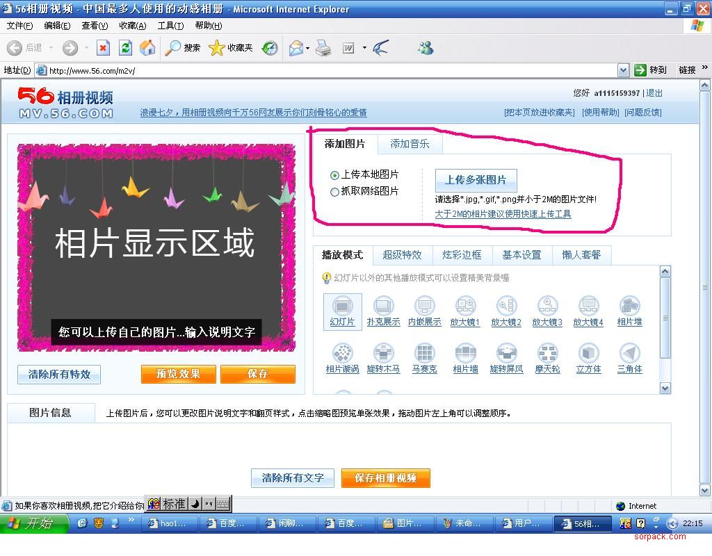 我看到很多朋友不会做相册视频,今天在这里就给大家讲解一下,也许对大家会有帮助!具体的网站有很多,不过个人觉得这个56的比较好,所以就以这个为例子,学会了这一个,其他的都大同小异!