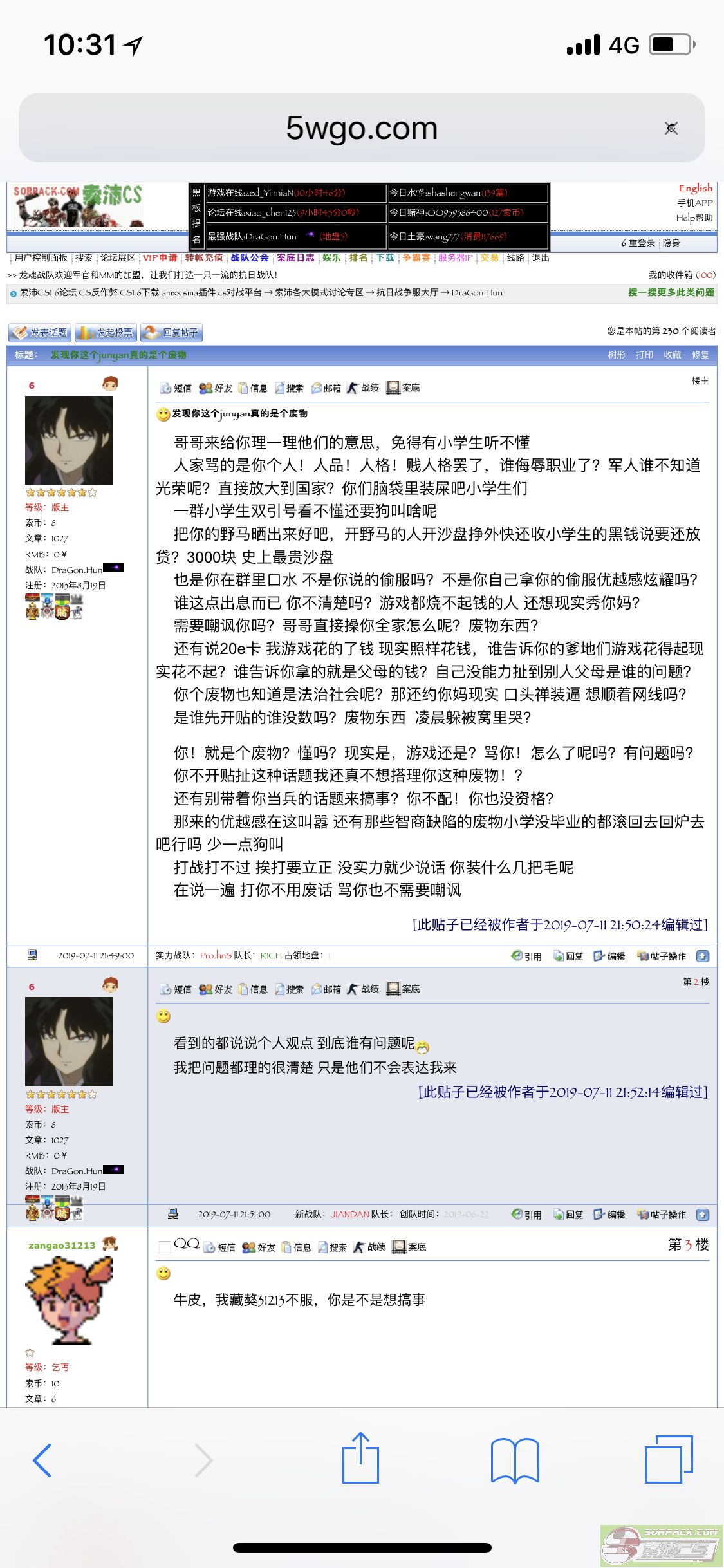 刚刚是马甲登陆看到你的贴忘记开大号 游戏都不行了你凭什么让爹地去找你? 不敢大家都看不起你个废物