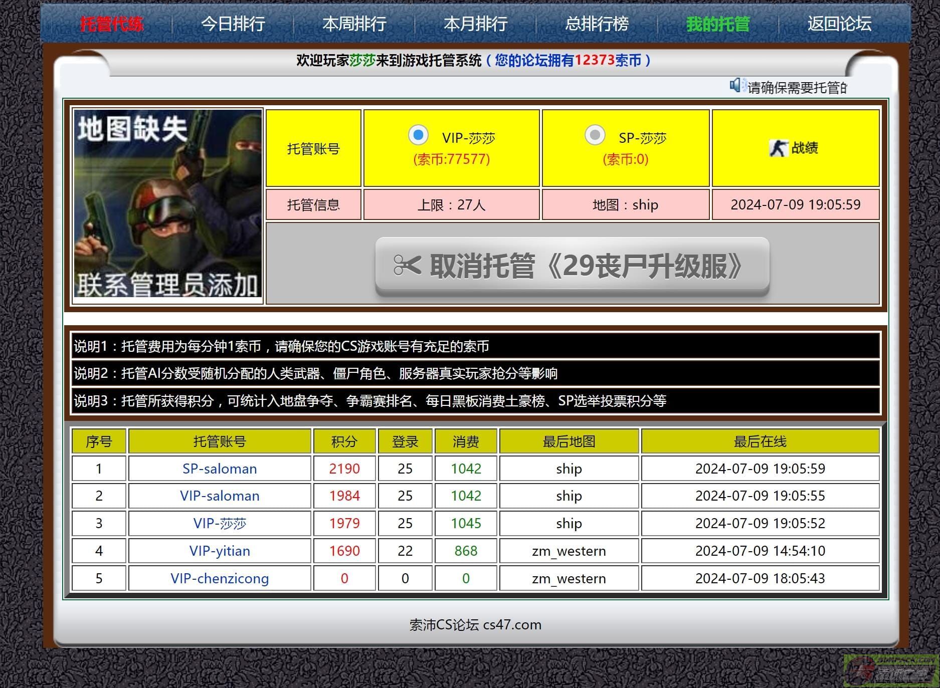 托管所获得积分,可统计入地盘争夺、争霸赛排名、每日黑板消费土豪榜、SP选举投票积分等