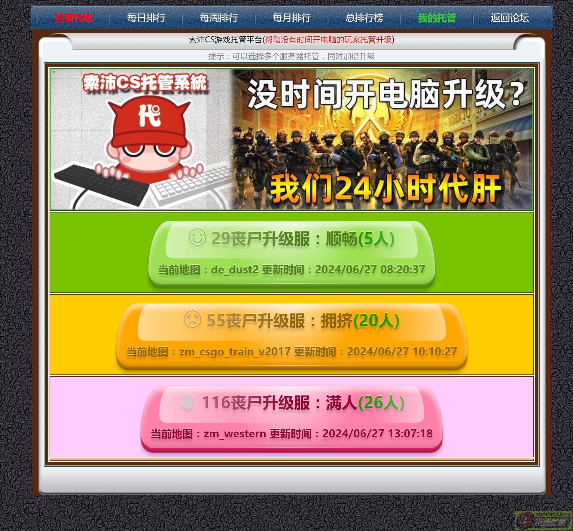 现在索沛有托管系统了,当你没空或者累的时候,就可以随时开启,让你的账号一直在线升级。