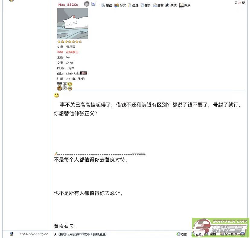 我找你,是因为你牛b,你为了正义,SP你都敢封,这个白狼只是个小VIP,封了又没事,你直接封吧,