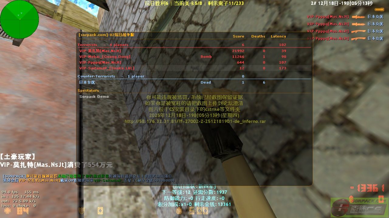 | 3 | 2025-12-18 18:56:00 | 【02 Anti-Japanese War Costume】VIP Member - Mozart [Mas.NsJt] purchased OP privileges and punished player VIP - SaitamaP_ for 5 rounds [Demo] |