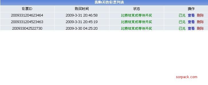 彩票ID购买时间状态操作