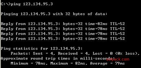 操作方法,打开dos窗口,输入命令ping 123.134.95.3 即可(如何打开dos窗口?按 开始-》运行-》输入cmd)